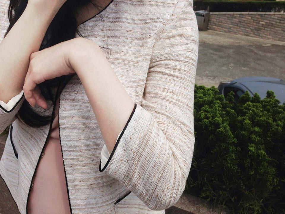 橘白混紡短版滾珍珠邊